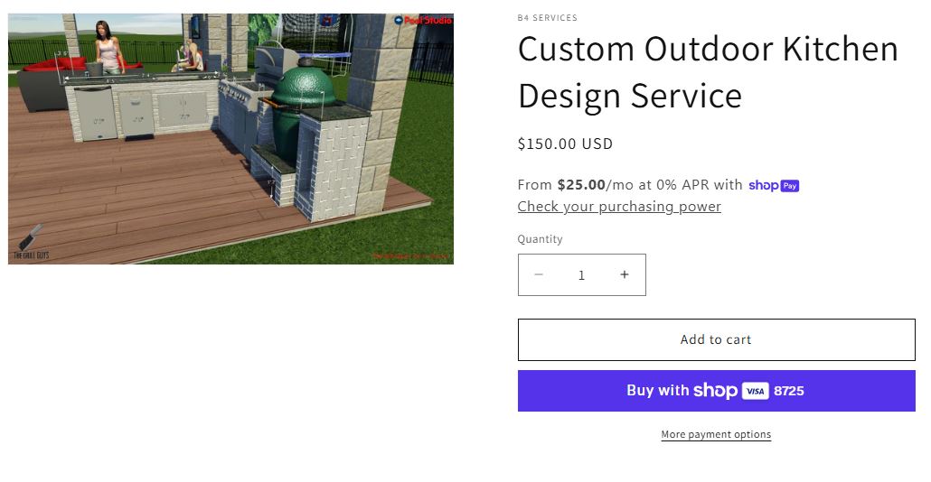 Purchase our $150 design service and upload your sketch to receive a professional 3D rendering of your dream outdoor kitchen within 5-7 business days